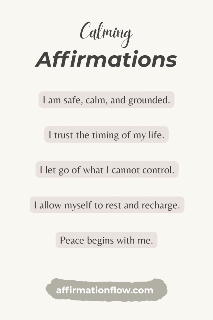 Try pairing these affirmations with gentle breathing exercises. Breathe in for 4 counts, hold for 2, and exhale for 6. As you exhale, mentally repeat one of these affirmations. This combination can help activate your parasympathetic nervous system and bring a deeper sense of calm.